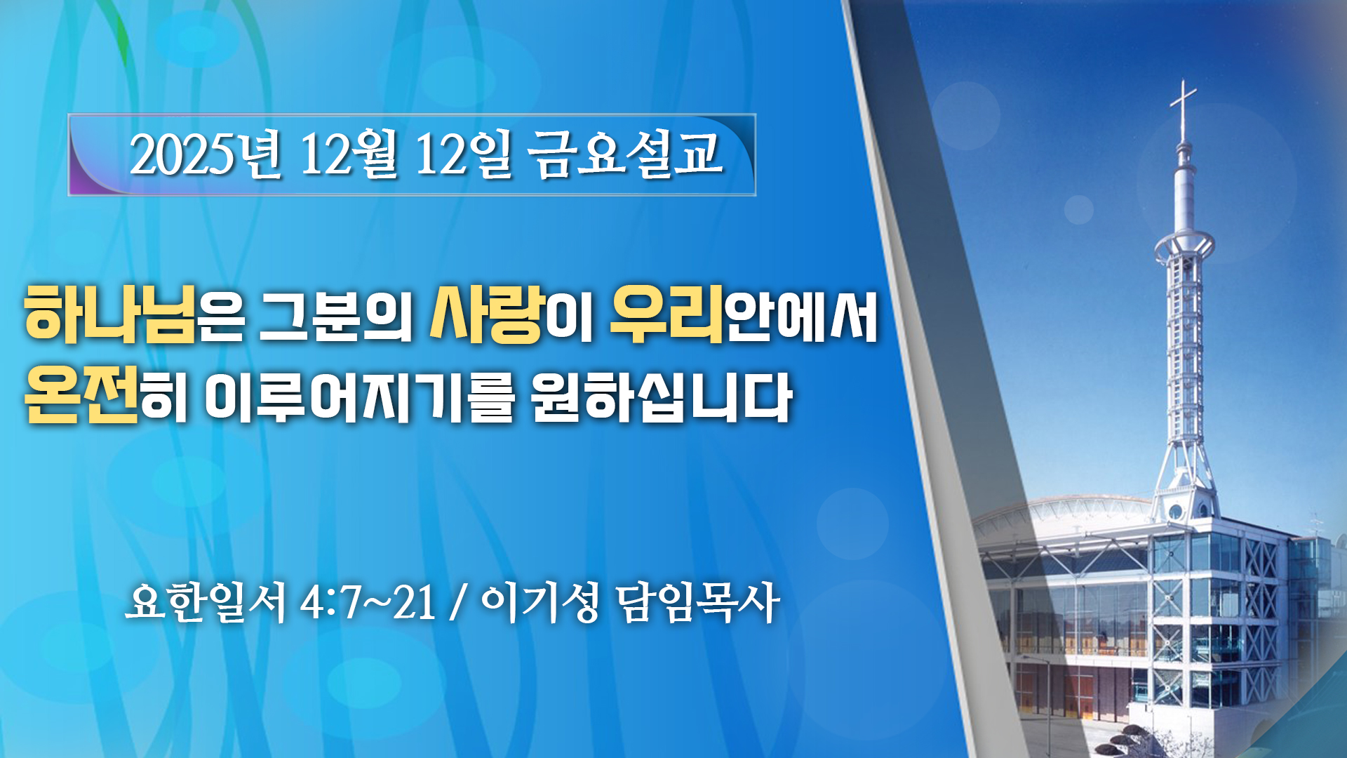 [±Ý¿ä¼³±³] Çϳª´ÔÀº ±×ºÐÀÇ »ç¶ûÀÌ ¿ì¸® ¾È¿¡¼ ¿ÂÀüÈ÷ ÀÌ·ç¾îÁö±â¸¦ ¿øÇϽʴϴÙ